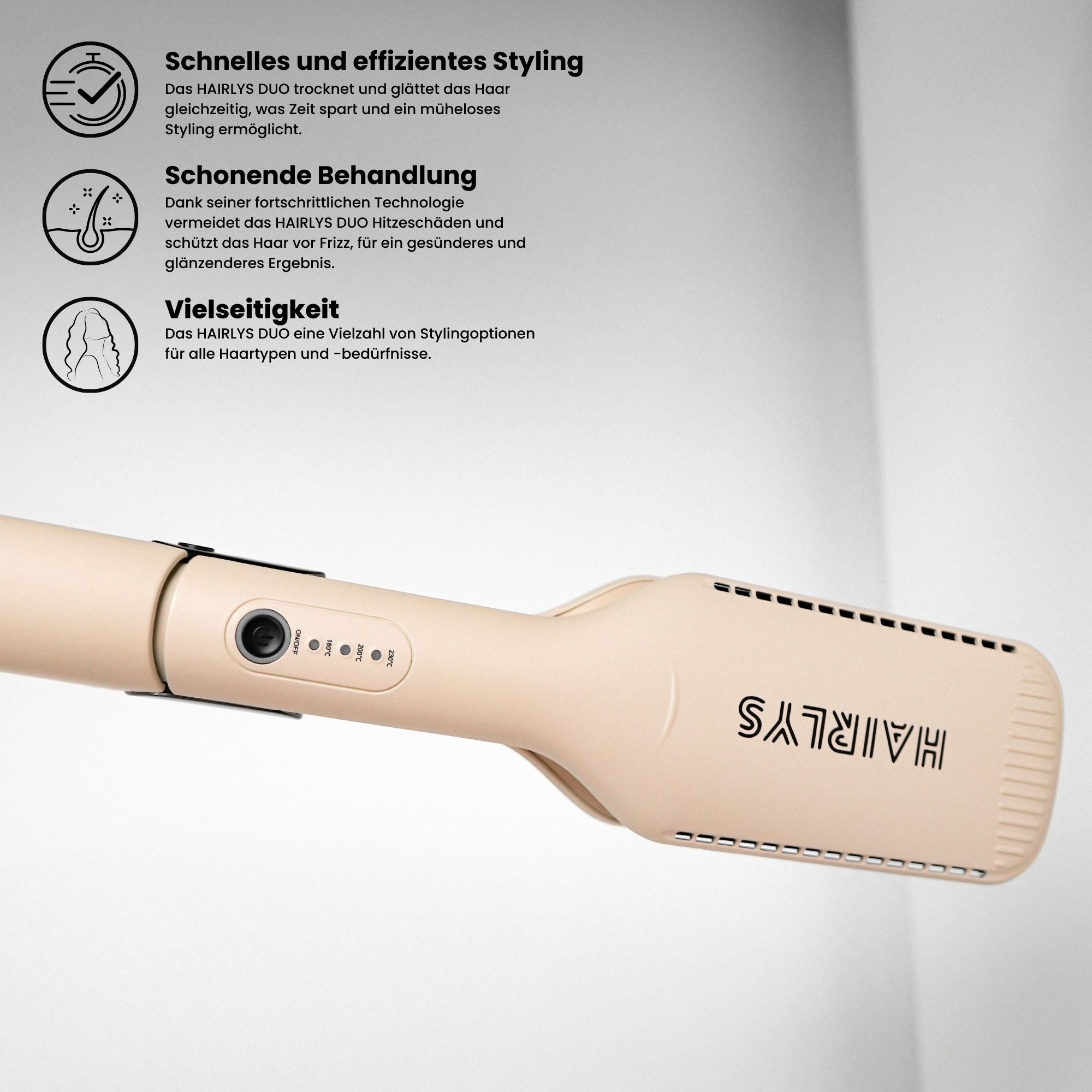 Entdecken Sie mit dem HAIRLYS DUO eine neue Dimension des Haarstylings und genießen Sie schönes, geschmeidiges Haar, das einfach unwiderstehlich ist!